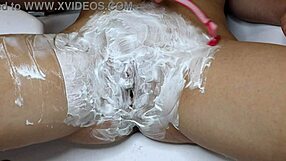 watch this hairy pussy shaved close-up revealing huge juicy hole