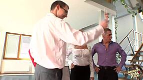 he discounts house by sharing blonde's tight ass in double anal penetration foursome
