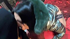 Lovely Latina redhead enjoys extreme blowjob cumshot