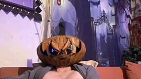 Passionate teen plays with food while masturbating on Halloween night. Solo fun awaits.