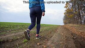 german scout picks up czech teen jennifer in leggings for outdoor public riding cowgirl orgasm and cum facial