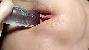 fuck doll double penetrates hairless big pussy closeup with toys