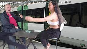 Lesbianas se alinean para follada anal en tren