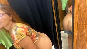 hairy huge ass beaver plugs butt while trying clothes in store solo masturbation
