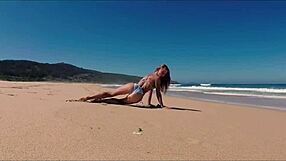 Bionda In Forma In Bikini Brama Sborra In Azione Pubblica All'Aperto