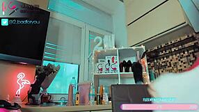 Wow, This Tattooed Bimbo Slut Fingers Her Wet Pussy on Webcam Cosplay!