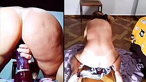 bbw slut crams double dildo deep in fat ass