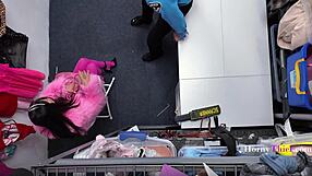 Shoplifter stepsister strikes a blackmail deal with her bro for a hidden cam office pounding in doggystyle and cowgirl.