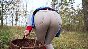 sexy milf teases huge ass in tight jeans through forest outdoor nature fetish walk