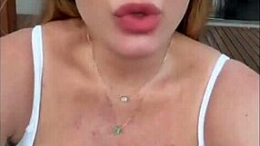 Pretty lady shows great cleavage while chatting with fans