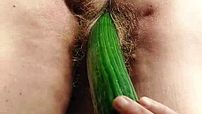 fuck hairy pussy with long cucumber