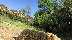 Uomo si mostra e si masturba un cazzo enorme vicino a una bella ragazza nel bosco per sborrare