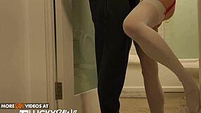 I dressed sexy in red stockings to seduce my roommate