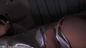 Petite half-asian catches bestie masturbating then straps on for anal lesbian pound