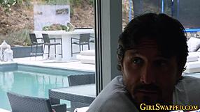 Oh wow, de dominante shemale milf neukt het strakke kutje van het meisje hard!