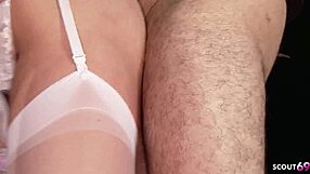 French Amateur in Satin Outfit Stockings Heels Fucks Licks Asshole Sucks Dick Rough