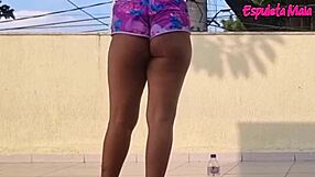 curvy brunette hikes shorts deep into ass crack outdoors