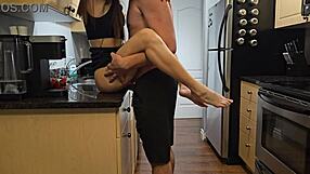 Petite Step Sister In Black Dress Fucked Hard On Kitchen Desk In Stockings