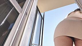 Damn, this latina flaunts shaved pussy on balcony!