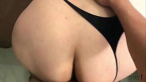 guy yanks latina's thong aside bends her over and unloads cumshot on fat ass