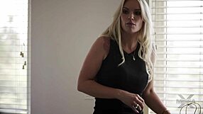 Busty MILF gags on cock in POV lingerie closeup