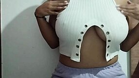 Milf Massages Her Huge Natural Tits with Horny Pleasure in Real Homemade
