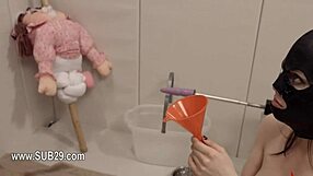 Ropes bind her for hardcore dildo anal