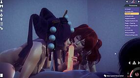 Honey Select 2 lesbian scene with Marie Rose and Nyotengu licking pussies. Big tits and asses featured.