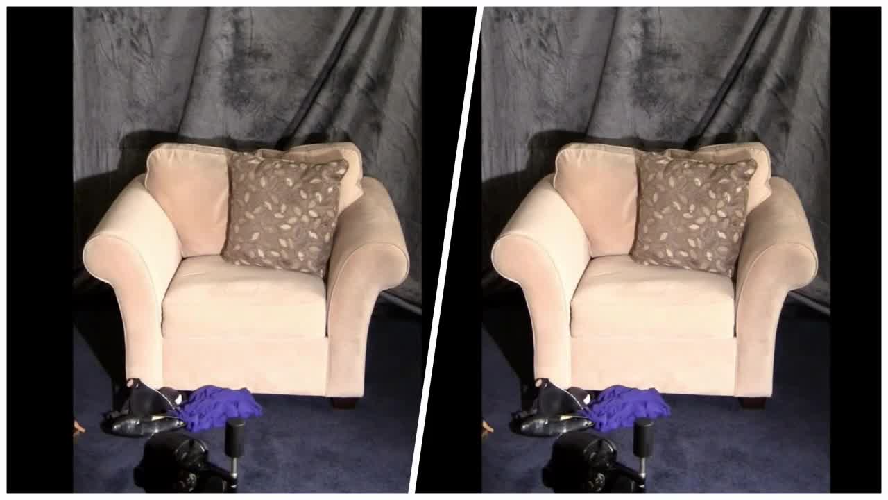 Brazilian milf Clarissa Santana experiences her first time in lingerie with shaved pussy and wet feet in bathroom backstage.