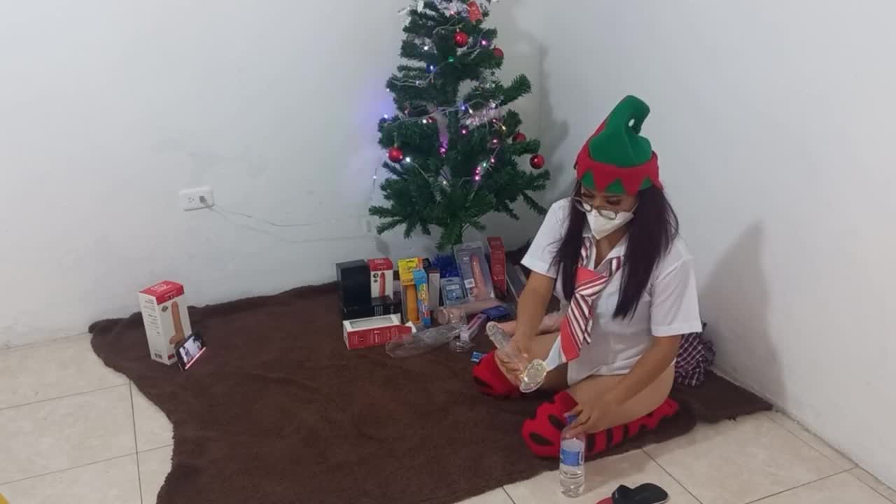 Latina Babe Kitty Catherine Masturbates Solo with Big Ass, Fucking Herself Using Christmas Dildo